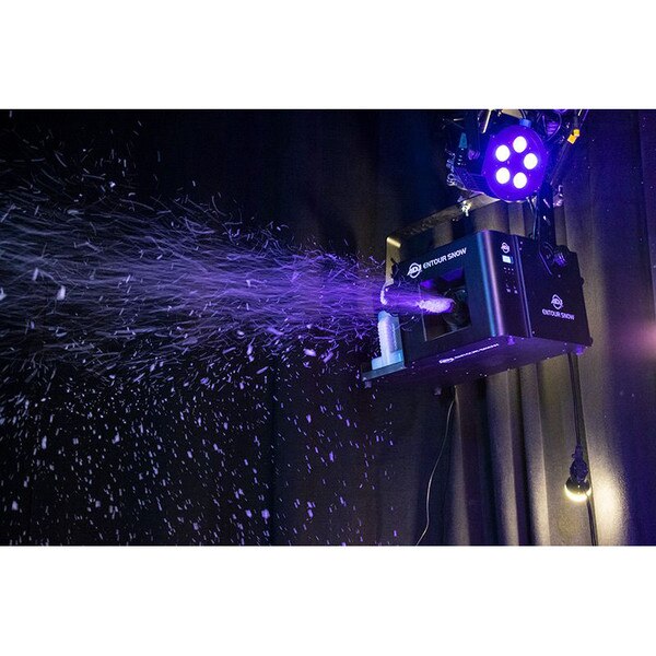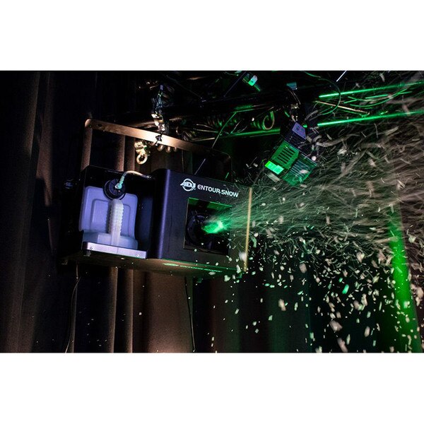 Entour Snow, a powerhouse in ADJ Lighting’s Entour Series of atmospherics, is a 1250W professional-grade snow machine is crafted for both installations and touring applications. Its high-output design projects imitation snow up to 10m vertically and 12m horizontally, perfect for large venues and stage productions. With flexible variable output, a built-in timer, and 3-pin & 5-pin DMX connections, control is at your fingertips. The rugged metal case, weighing 30 lbs., houses a 5.6L fluid tank, offering over 11 minutes of non-stop operation. Ideal for festive parties, concerts, and theatrical productions, the Entour Snow brings the magic of a powerful snowstorm right on cue.