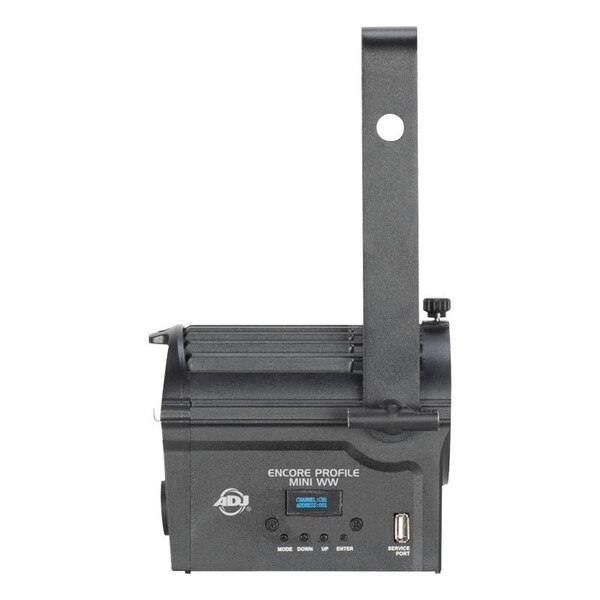 Designed for applications where size really matters, the ADJ Lighting Encore Profile Mini WW is a compact and versatile LED-powered ellipsoidal luminaire. It utilizes a potent 40W warm white LED engine with a 50,000-hour average life expectancy and 3000K color temperature. Its light is focused through precision-engineered optics to deliver a crystal-clear 900 Lumen output with an even field and extremely high CRI of >98.