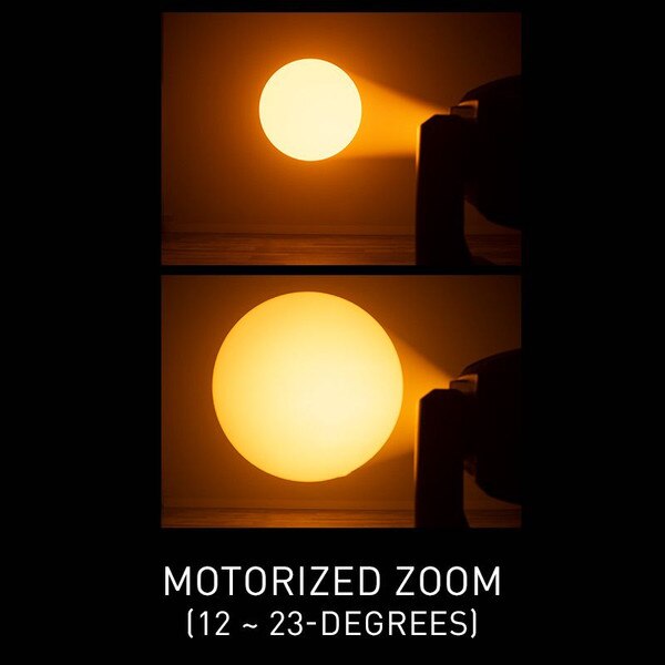 An extensive feature set provides lighting designers using the Hydro Spot 1 with a wealth of creative potential. This starts with motorized zoom, allowing for a variable beam angle of 12° ~ 23°, which is paired with motorized focus to ensure pattern projections remain sharp regardless of distance. The fixture features two independent color wheels, each loaded with 8 dichroic colors, including CTO, CTB and UV filters. It also features a separate GOBO wheel, which has 6 slots for replaceable, rotating glass or aluminum GOBO patterns. Two rotating prisms (5-facet linear & 6-facet circular) allow for the creation of stunning aerial effects, while two frost filters (medium and heavy) allow for blurring the edges of GOBO patterns and creating a wash output, respectively.