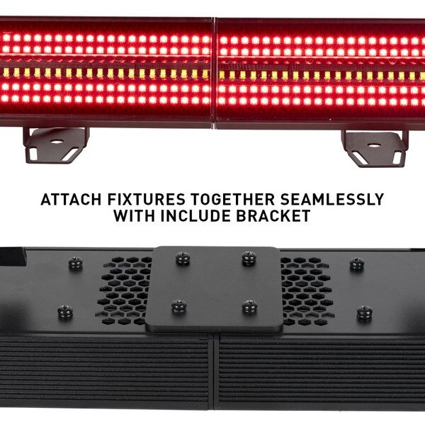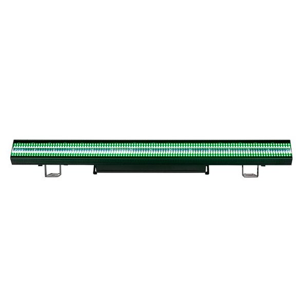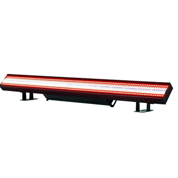 The ADJ Jolt Bar FX features a central strip of 112 x 5-Watt cool white SMD LEDs, surrounded on both sides by a total of 448 x 0.3W RGB color mixing SMD LEDs. This allows the same fixture to generate intense white strobing and multi-colored chase effects. Both types of LED are also grouped into independently controllable zones (16 white and 32 color), which means the unit can also be used to generate strobe chases and other ‘eye candy’ effects.