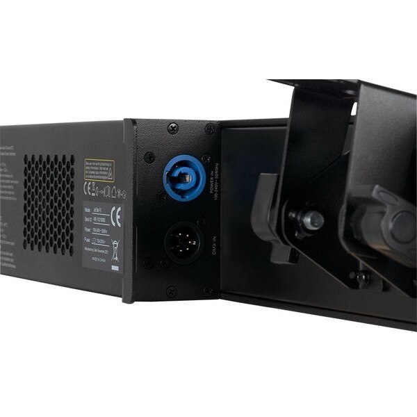 Measuring 1m in length (39.4”), the fixture is compact in its other dimensions (4.2”/107mm and 4.8”/123mm). It has a robust metal construction yet has been carefully engineered to keep its weight to a minimum (16.5lbs. / 7.5kg.), making it ideal for concert touring and event production applications. It is fitted with locking power input and output sockets, allowing multiple fixtures to be connected from a single power outlet, which are positioned on either side of the fixture – together with the 5-pin DMX input and output sockets – to allow convenient setup and neat cable runs.
