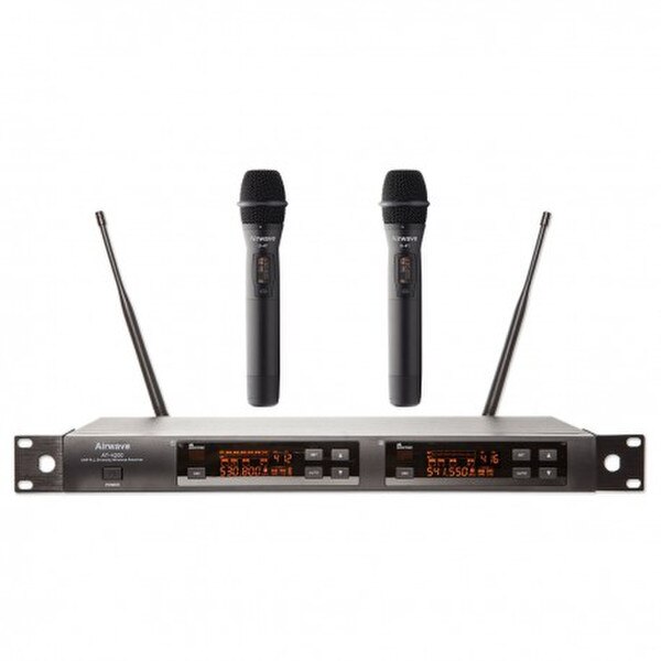 The Airwave Technologies AT-4210 is a 144-Channel UHF Dual Channel Wireless Microphone System with (2) handheld transmitters. There are 144 digital switchable UHF Channels to choose from, all within the 514-542 MHz frequency range.