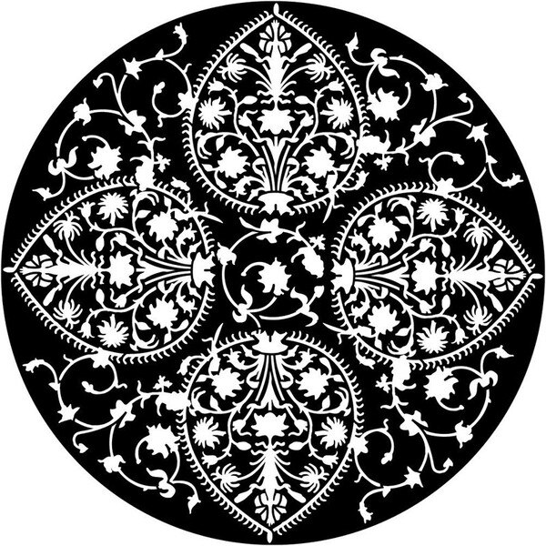The design of a Metal Gobo is laser cut out of stainless steel allowing light to shine through and project a white pattern on the surface. A color filter can be added to the fixture if color is desired.