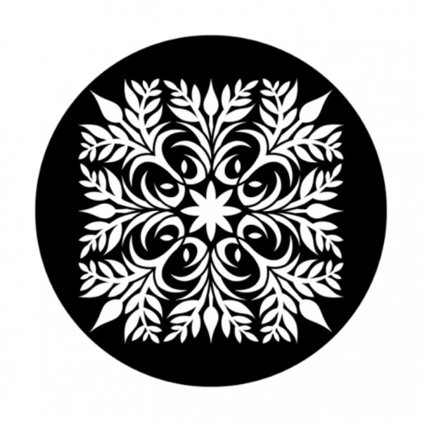 A 1-Color Glass Gobo is made from a color dichroic filter. It projects a single color with intricate detail.