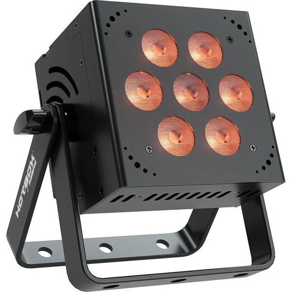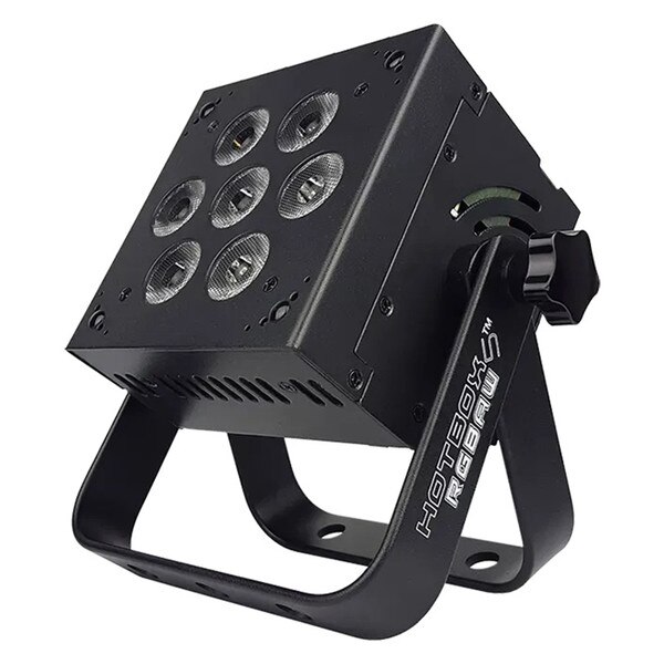 HotBox 5 RGBAW fixtures offer 7x 15W 5-in-1 RGBAW LEDs, advanced electronics, and a rock-solid aluminum casing with dual hanging brackets, all wrapped up in a cute little package. It weighs in at just 3.5 pounds and is only 4 x 5 x 5 inches (7.25 inches tall including the brackets.)