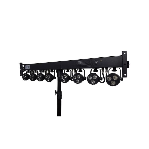 Weather System™ EXA is a powerful and portable lighting system with eight individually controllable LED fixtures, each with 3* 15W high-intensity 6-in-1 RGBAW+UV LEDs. They come fully loaded with a tons of cool features that include RGBAW+UV color mixing, independent fixture swivel & tilt positioning, a wireless footswitch controller with internal rechargeable battery, an adjustable lighting stand, a fixture carry case, and tons of goodies that will give users all the tools they'll need to create fantastic light shows!