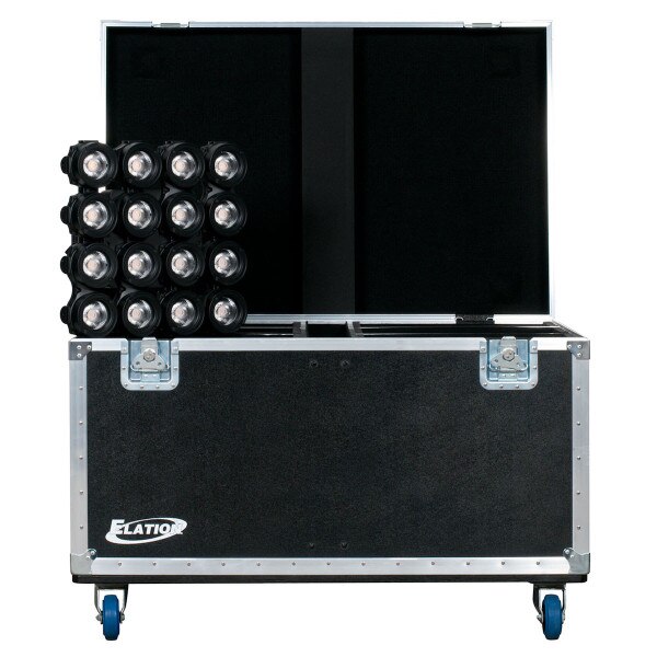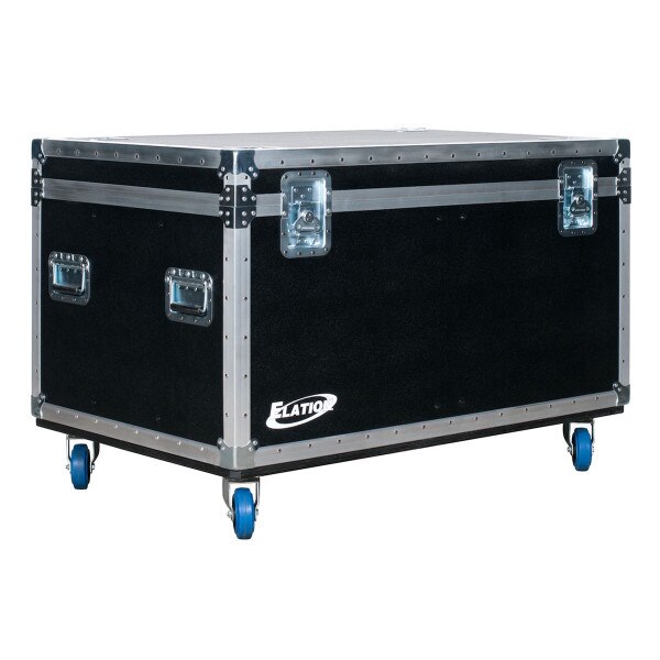 The CUEPIX 16IP 6-Pack Road Case by Elation is a durable tour ready road case made specifically to hold (6) CUEPIX 16IP™ / CUEPIX 16IP DTW™ effect panel fixtures. Manufactured in the USA, this custom road case features a top load design with (6) 2" thick foam lined slots, a center slot which can be used to store cables and clamps, 1/2" plywood walls with ABS exterior finish, 1" plywood base plate with (4) 300# rated smooth rolling blue casters, ATA approved flush mounted hardware including high impact tongue and groove sealing extrusions, a dual hinged lid, (4) flat corners, (4) stacking cups, (2) recessed locking spring latches, and (4) spring loaded handles.