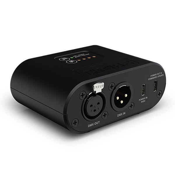 Sync an unlimited number of D-Fi-ready fixtures wirelessly and simultaneously with D-Fi Hub 2. A compact D-Fi wireless transmitter/receiver that sends and receives wireless DMX signals over an impressively long range while being fully FCC and R&TTE compliant. Compatible with the ILS Command, this unit is the perfect sidekick to your ILS rig. With a fastening strap, USB-C power out and more, ease of use and versatility are built right in to D-Fi Hub 2.