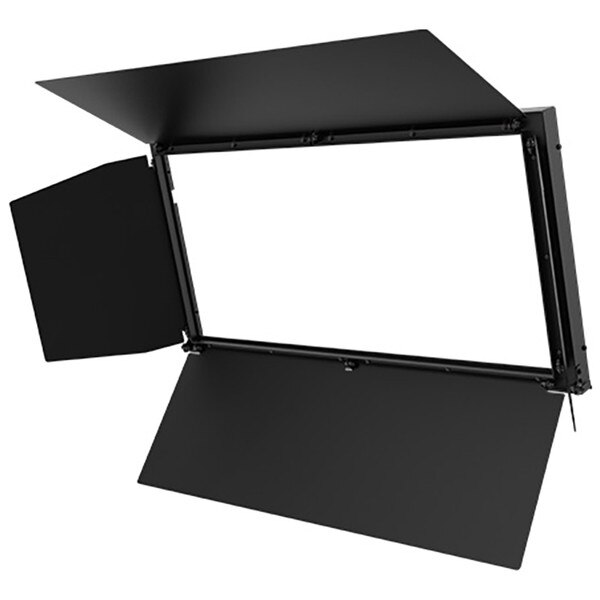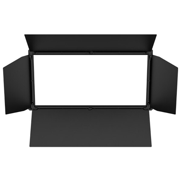 Four-leaf aluminum barn door in black finish for use with onAir Panel 2 IP. Shield excess light from set elements by modifying light direction with adjustable leaves that shape light output to avoid unwanted light spill.