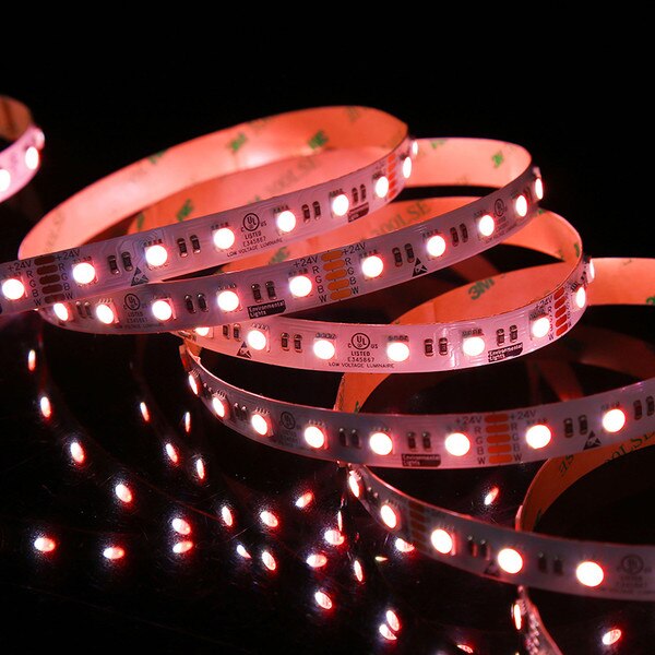 Eluxtra™ 4-in-1 LED Strip Light, 24V, Indoor is UL Listed and features 60 LEDs per meter. Eluxtra 4-in-1 LED Strip Lights are 24V and allow you to run a full reel without any visible voltage drop or corresponding color changes along the length of the run. Mix all four diodes together to create a vast spectrum of vibrant colors for indoor LED tape installations.