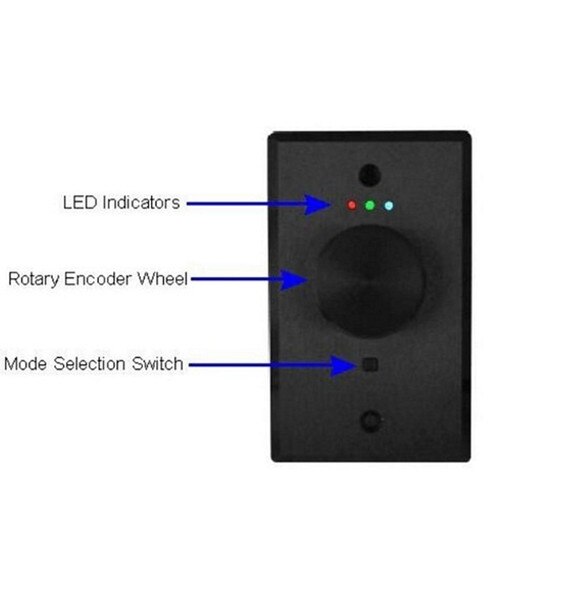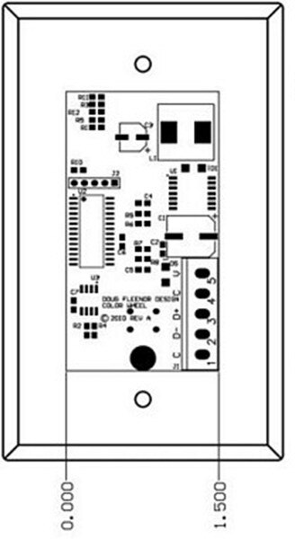The Color Wheel is a simple wall-mounted device designed to operate DMX512 based LED lighting fixtures. It can be configured to operate 3, 4, or 5 channel fixtures. Active channels may be increased or decreased individually, or all at once.