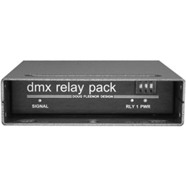 Doug Fleenor Design DMX Relay Packs use dry contact air-gap relays. These relays have advantages and disadvantages over the solid state relays found in dimmer packs. Solid state relays can be switched on and off rapidly with no wear, but tend to leak current even when in the off position. Air-gap relays do not leak current, but due to their mechanical design have a finite life span. Doug Fleenor Design relay packs should be used where a true-off condition is required (no voltage, no current). They should not be used in applications where they will be turned on and off rapidly (for example in chase lights). DMX512 control of low voltage switch closure devices (such as slide projectors and fog machines) is made possible with these low voltage DMX Relay Packs.