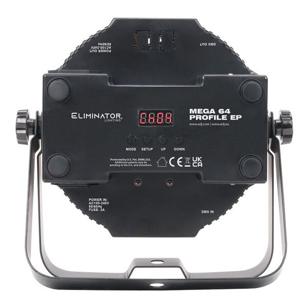The Mega 64 Profile E offers smooth color mixing with no RGB+UV shadows, has a 25-degree beam angle and has 5 DMX Channel modes for a variety of programming options. Users can also use the ADJ LED RC2 wireless remote, which is sold separately, to control the Mega 64 Profile EP.