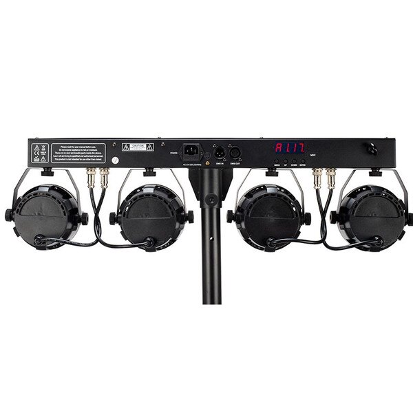 The Mini Par Bar is a very versatile system allowing user to use the fixtures portably on the supplied tripod stand, in a fixed installation using the mounting points on the linear base or set on the ground used as foot lighting. This flexibility allows for a wide variety of uses: stage lighting, bands, DJs, nightclubs, lounges, small bars and portable churches.