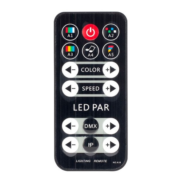 The lighting system is easy to use with various control options. Use the supplied wireless remote or connect to DMX control to use in sound active mode, DMX, auto or link multiple systems together in a Primary/Secondary operation.