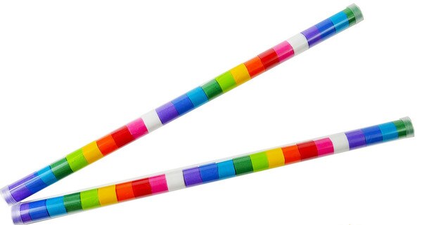 18" X 7/8" Speed Load Confetti Tube filled with 24 - 15'-17' Long Tissue Streamers. A great special effect for outdoors use with big crowds and get for uses where clean-up is an issue. The tissue paper is biodegradable.