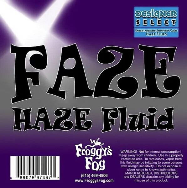 Froggy's Fog Faze Haze is designed for a wide variety of water-based hazers. A very fine veil of airborne canvas is produced exposing light beams with a moderate refraction rate. Faze Haze is a high-output, premium water-based haze fluid formulated to produce a beautiful, translucent canvas of haze with long hang time. This haze is ideal for mobile DJ's, night clubs, laser tag arenas, and lighting enhancement applications. Until you've tried Faze Haze by Froggy's Fog, you'll never realize how good your lights could look. It's perfect for any venue or facility, it's 100% odorless!