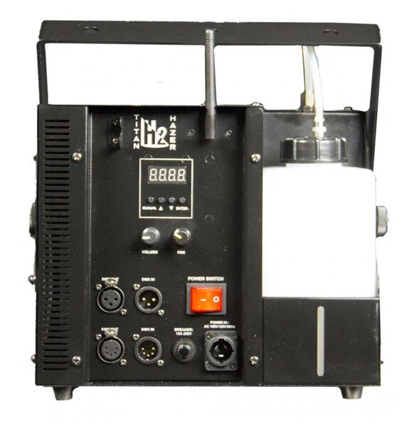 The Titan H2 is one of the most advanced haze machines on the market. Covering over 4000 cubic feet per minute the H2 is perfect for any small, medium club or stage production. The continuous production ensures even coverage and the right amount of haze when you need it. The unit features an efficient 1200 watt heater core as well as DMX capability and can be truss mounted.