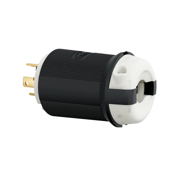 Locking Devices, EdgeConnect™ Twist-Lock®, Industrial, Male Insulgrip® Plug, 30A 3-Phase 480V AC, 3-Pole 4-Wire Grounding, L16-30P, Spring Terminal, Black and White Nylon.