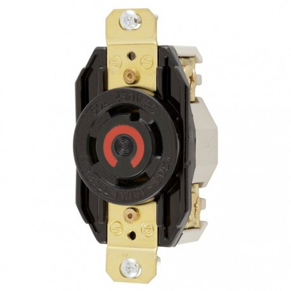 Locking Devices, Twist-Lock®, Industrial, Single Flush Receptacle, 30A 3-Phase 480V AC, 3-Pole 4-Wire Grounding, NEMA L16-30R, Screw Terminal, Nylon face, Back and side wire, Black.