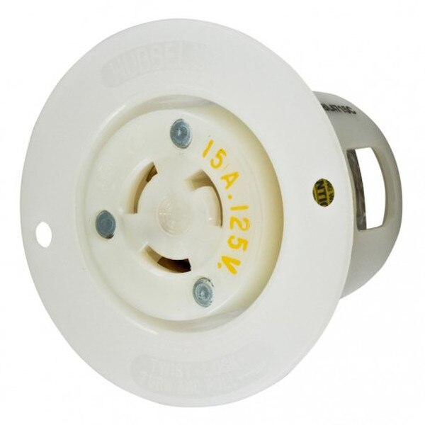 Locking Devices, Twist-Lock®, Industrial, Insulgrip® Flanged Receptacle, 15A 125V, 2-Pole 3-Wire Grounding, NEMA L5-15R, Screw Terminal, Nylon casing, Back wired, White.