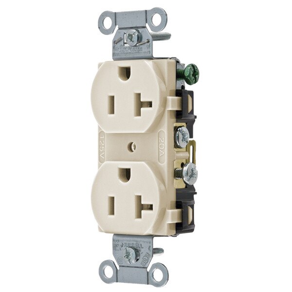 Hubbell Straight Blade Duplex Receptacle 2-Pole 3-Wire Grounding, 20A 125V, 5-20R - Light Almond