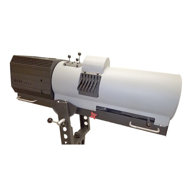 The Model 1280 SuperStar 600 by Lycian is a 600 watt LED followspot. The spot diameter shall be controlled by a top-mount lever which opens and closes a nichrome steel iris. The unit includes a top operated 3 plate sliding fader and a 6 color, self-cancelling color boomerang. A 600 watt LED with heat sink is housed in the rear of the head Optical quality lenses complete the optical system.