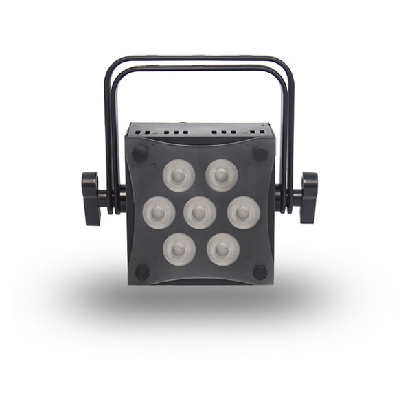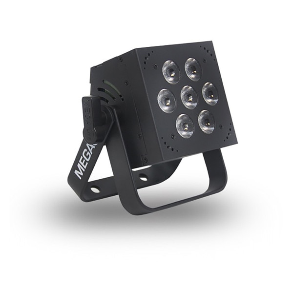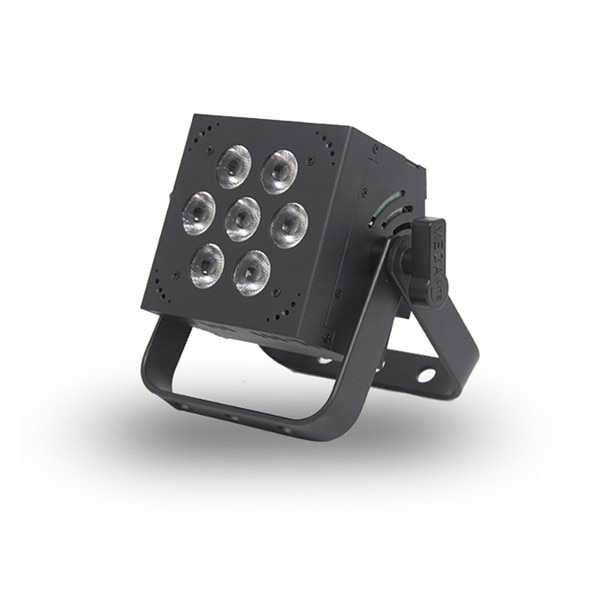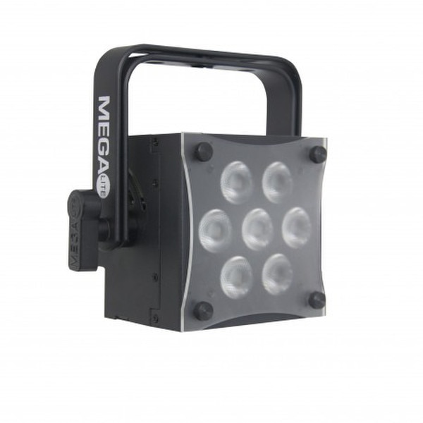 The Baby Color H84 is an ultra compact, bright color changing fixture. Equipped with 7 12-watt LEDs, the output of the Baby Color H84 contends with the output of larger fixtures. The RGBWAUV LEDs produce a wide range of vibrants colors with the ability to add UV for an eerie hue effect. The fixture has a 20° beam angle and comes with a diffuser that increases the beam angle to 25°. The Baby Color H84 is controllable via DMX 512 and has strobe, macro and dimmer effects. It has a double mounting yoke so it can to be set upon the floor or hung from a structure.
