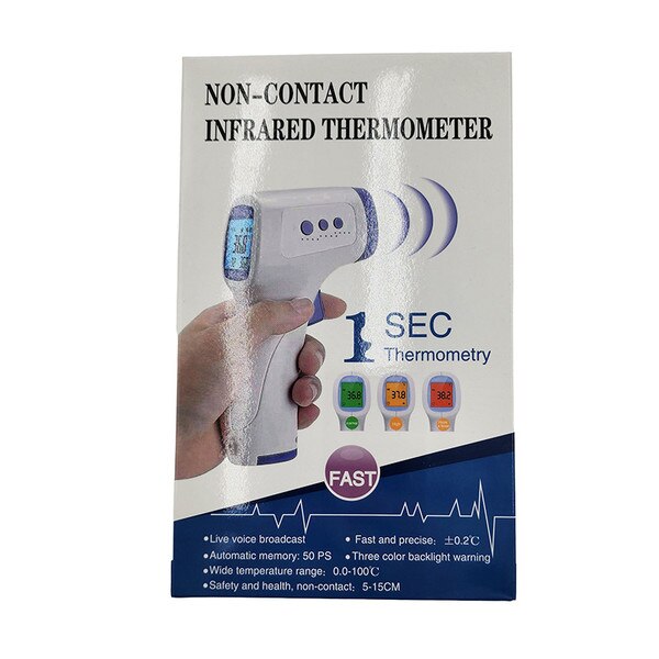 No-Contact Infrared Thermometer - 12 Pack(0)No Reviews yet $473.00 Quantity discounts available QuantityPrice SKU: PPE FYT-8806 12 PACK GROUP Quantity -+ Add to Cart Details Features:Live voice broadcastAutomatic memory: 50 PSWide temperature range: 0.0-100°CSafety and health, non-contact: 5-15CMFast and precise: ±0.2°CThr... Details Back DetailsFeatures:Live voice broadcastAutomatic memory: 50 PSWide temperature range: 0.0-100°CSafety and health, non-contact: 5-15CMFast and precise: ±0.2°CThree color backlight warning12 count Reviews 0 Back Ratings & ReviewsNo reviews availableBe the first to Write a Review