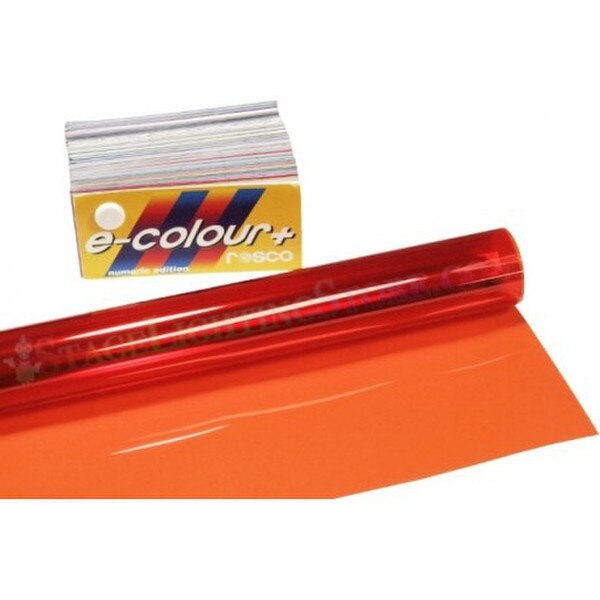 A rosy amber which produces a romantic sunset color. Useful as sidelight or backlight color. (Transmission = 58.3%).