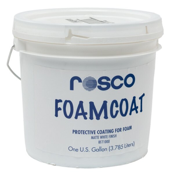 Foamcoat is a non-toxic, water based coating for styrofoam and polystyrene foam, as well as other surfaces. It provides a hard, durable finish that resists chipping and cracking, yet can be sanded smooth or carved to add detailing. Foamcoat can be used on a wide variety of surfaces including foam, primed wood, concrete block, primed fiberglass, paper maché, muslin and many other materials. Foamcoat is fully compatible with all Roscopaints used either as tints or as surface coatings. Foamcoat is inherently flame retardant and water resistant.