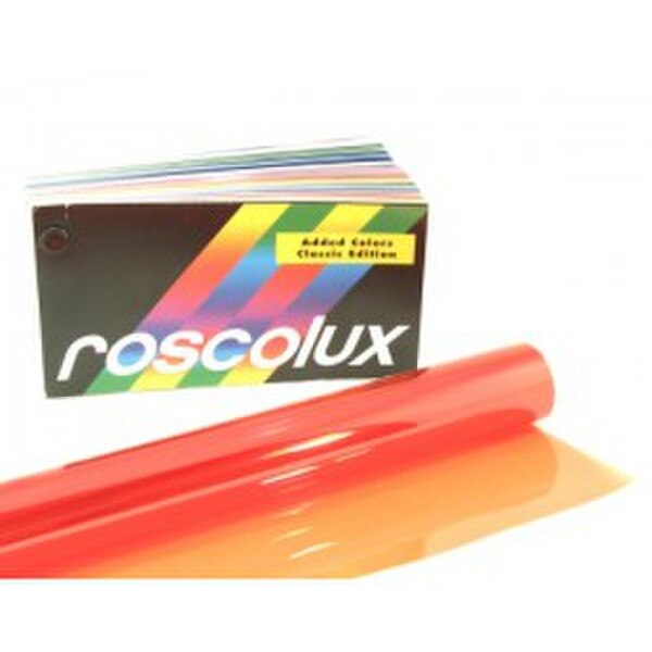 A rosy amber which produces a romantic sunset color. Useful as sidelight or backlight color. (Transmission = 51%).